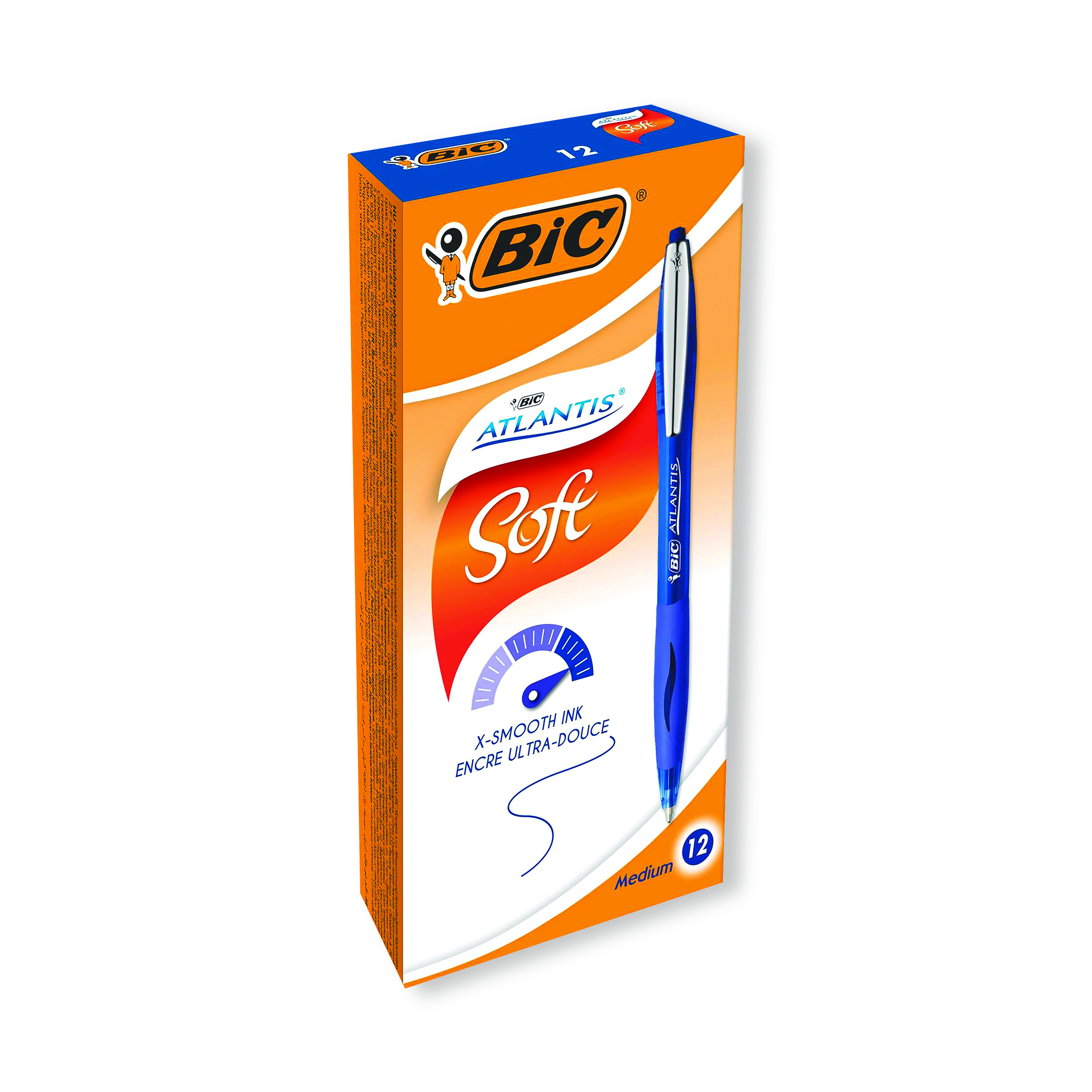 These Bic Atlantis Premium Ballpoint Pens feature Bic Easy Glide ink for smoother, more consistent writing. The medium 1.0mm tip writes a 0.4mm line width, perfect for everyday handwriting. The retractable pen also features a stylish curved barrel for comfort in use and a metal pocket clip. This pack contains 12 blue pens.